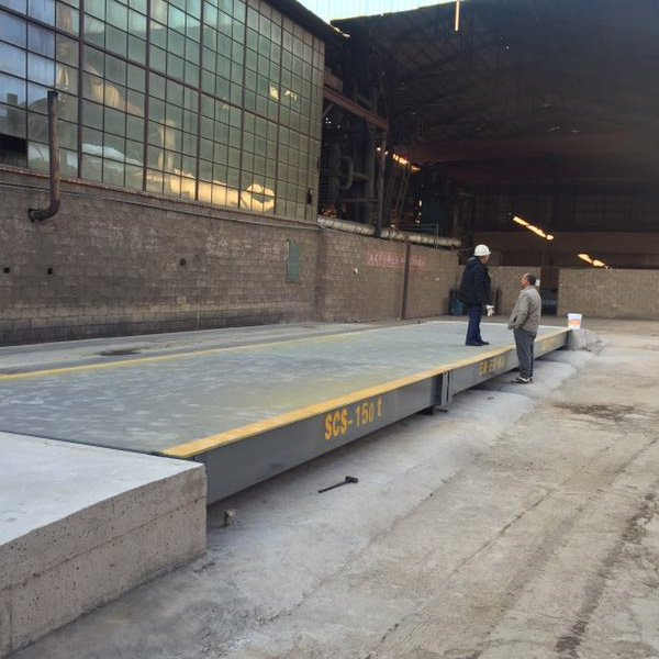 電子地磅安裝師傅正在加快電子汽車衡的安放工作